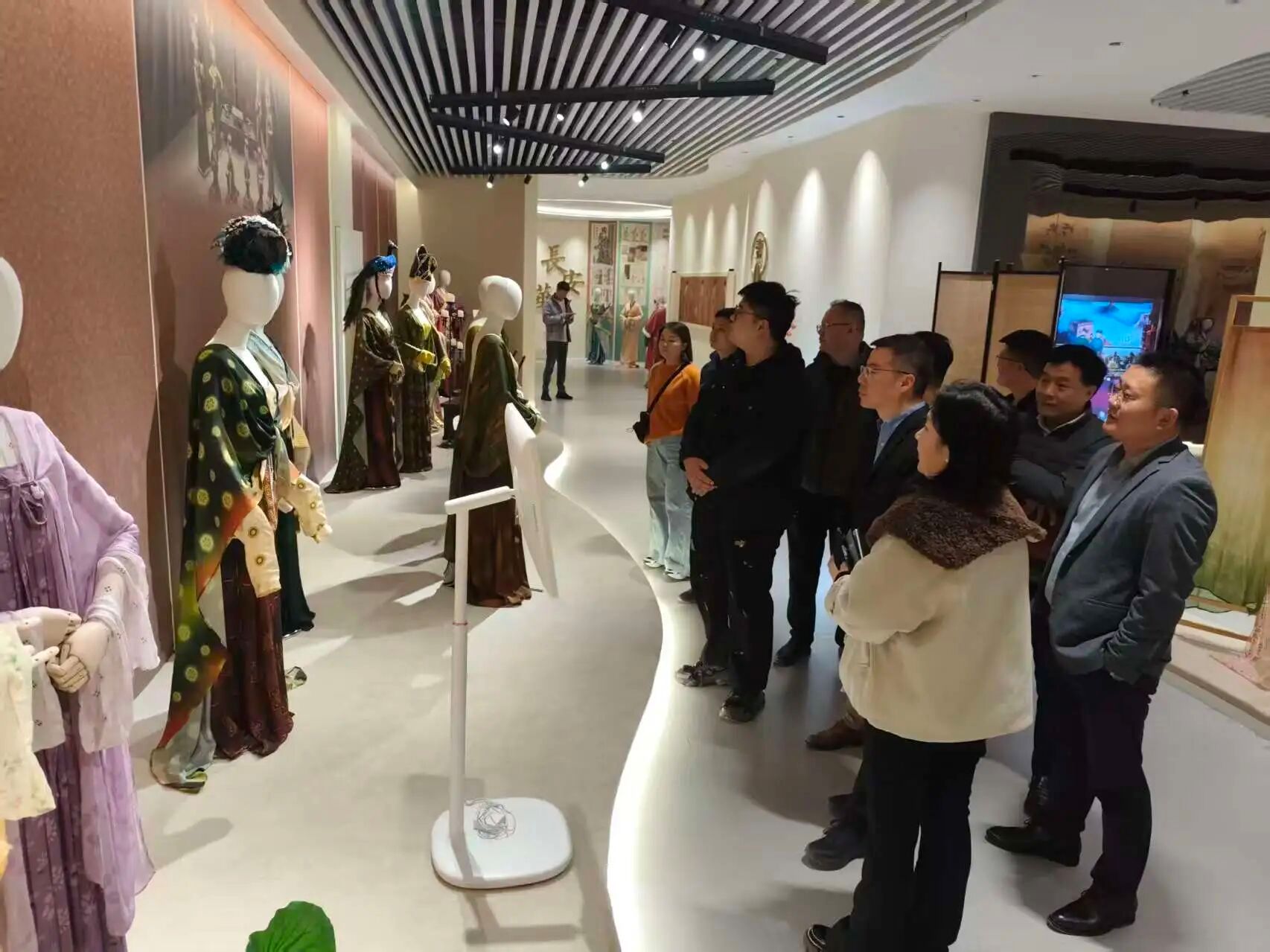座谈会后,陕西校友会组织参会校友代表,沉浸式参观母校大学科技园中华美服饰文化中心展厅。在展厅内,校友们详细了解学校在服饰文化传承、纺织新材料研发等领域的成果转化案例,不少企业代表当场表达合作意向 —— 从事商贸流通的校友企业提出 “联合开发一带一路外贸服饰” 的设想,文化旅游企业则希望对接具身智能穿戴研发团队,探索文创旅游应用可能性。
