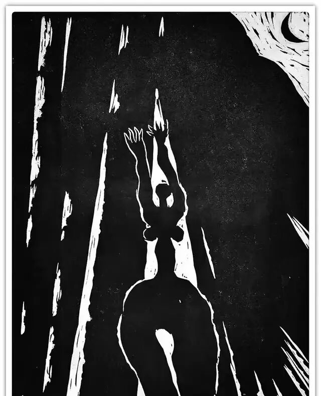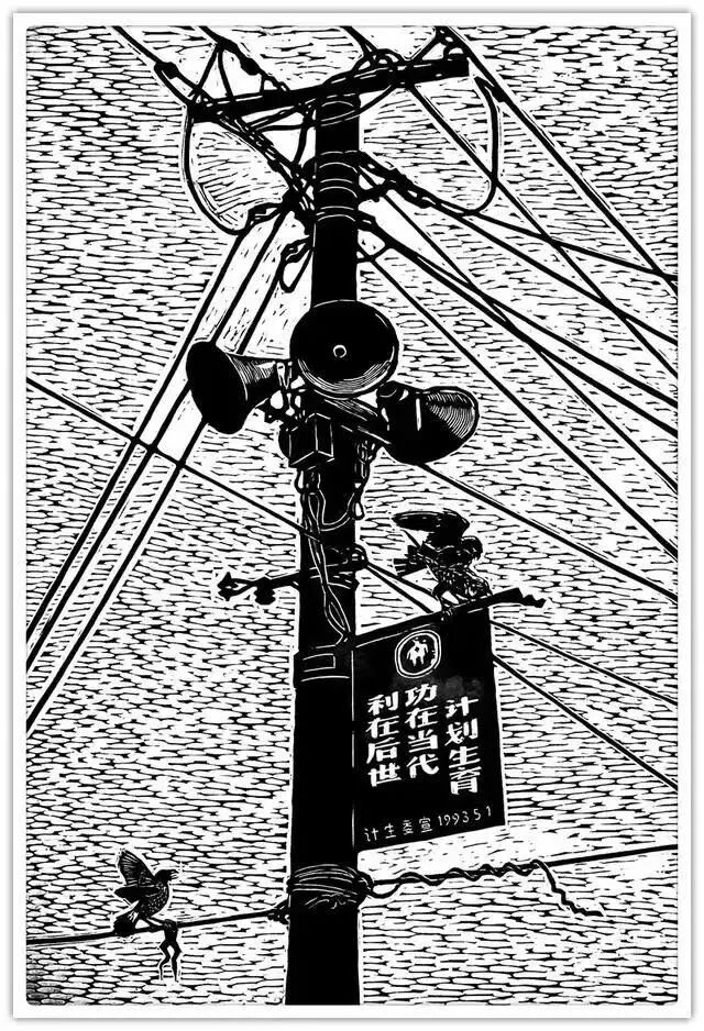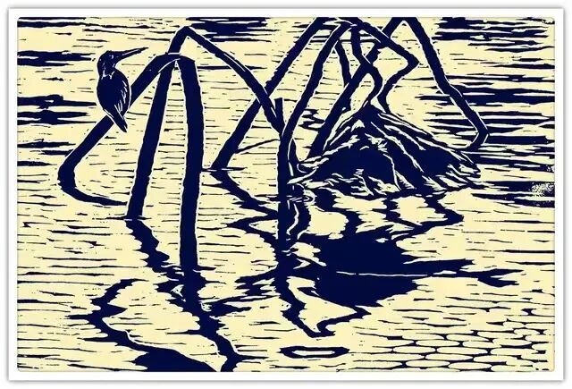 《蘑菇云·问号》以核爆的狰狞意象叩问文明存续的底线,《乌鸦栖枯树》借萧瑟图景寓言生态衰败的隐忧,《凝视之眼》则以犀利的视觉语言凝视战争留下的累累伤痕。他以夸张变形的构图、强烈对比的刀法,构建出极具冲击力的社会隐喻空间,这正是他被誉为“艺术界鲁迅”的核心缘由。而在“抒情之黑白”系列中,他又笔锋一转,以细腻的黑白层次铺陈出静谧悠远的意境,营造出如诗似禅的心灵净土,尽显艺术语言的丰富性与精神厚度。