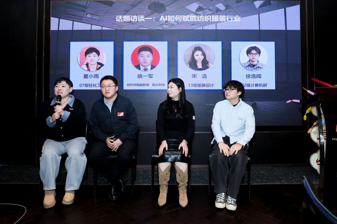 在访谈交流环节,校友们围绕“AI如何赋能纺织服装行业”“如何促进北京校友会高质量发展”两大核心议题展开深度探讨。大家立足不同行业视角,分享实践经验、交流创新思路、共商发展路径,既为传统行业的数字化转型提供了有益借鉴,也为校友会未来的规范化、特色化发展凝聚了共识、明确了方向。校友们纷纷表示,将继续心系母校、守望相助,竭尽所能为校友互助共赢、为母校事业发展添砖加瓦。